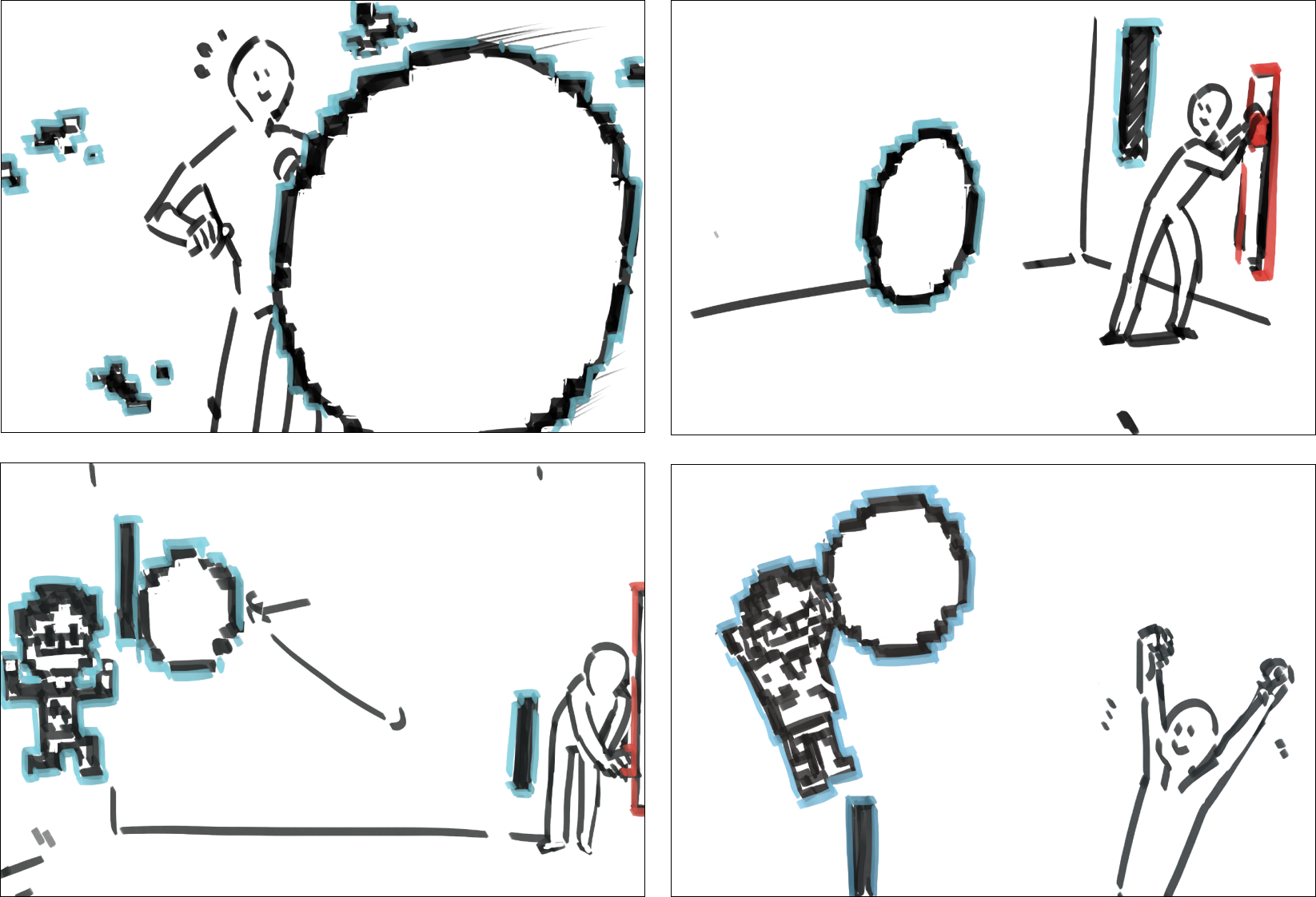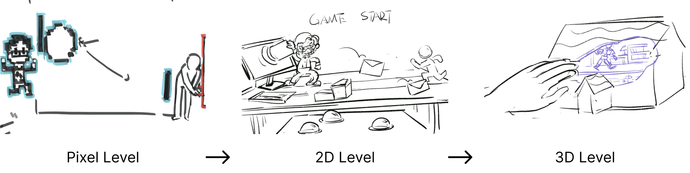 After defeating Jian in the Pong game, Jian escape into the computer and return in a more advanced 2D state. At the time, a previous trapped playtester comes out to help the player. Player uses the physical button to help the playtester go through the desk and avoid the files throwed by Jian.